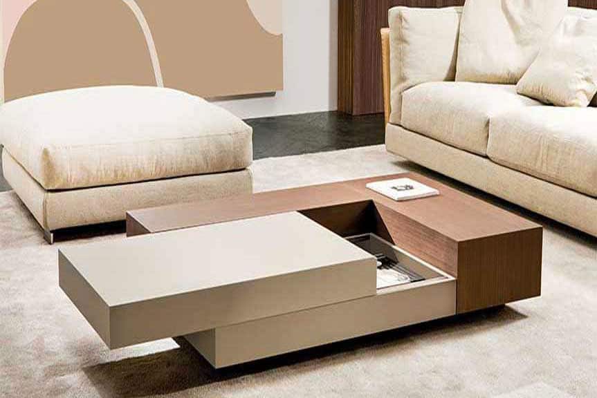 The structure is made of veneered ash. The sliding top hides a large and practical storage compartment that will allow you to arrange your favourite magazines or objects.