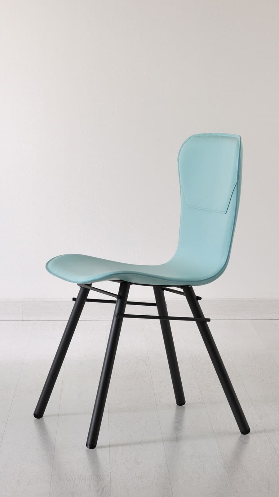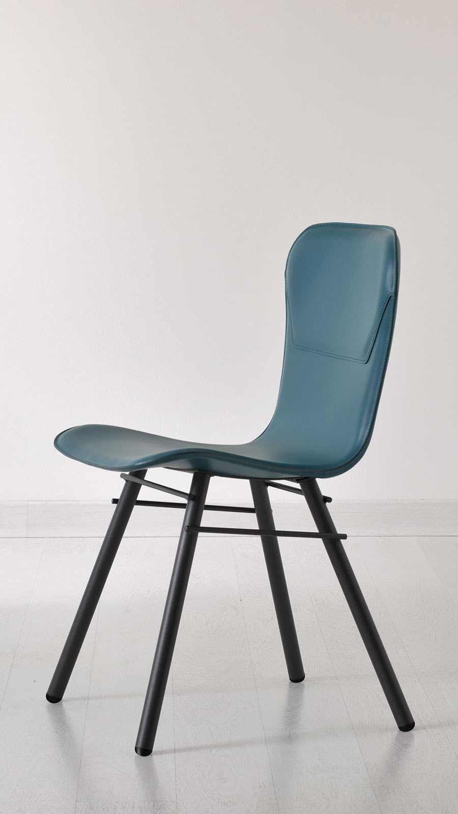 The relaxed look and the welcoming shapes define Boulevard, a chair with a leather-covered shell.