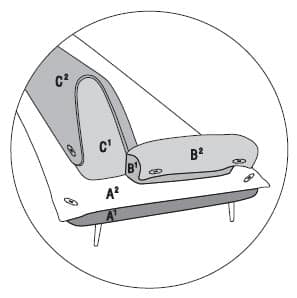 The seat and back cushions are made of polyurethane and are completely covered in flap.