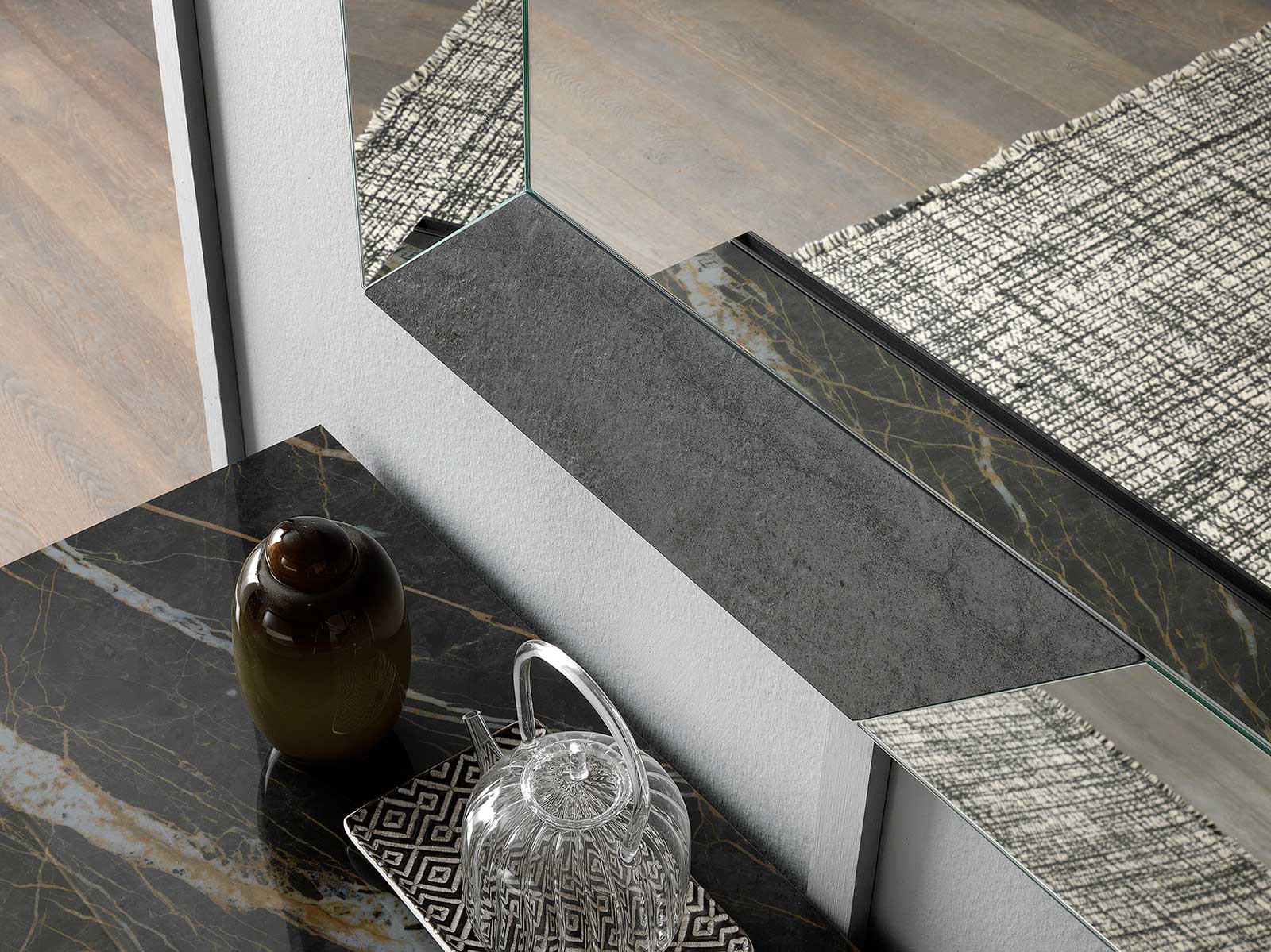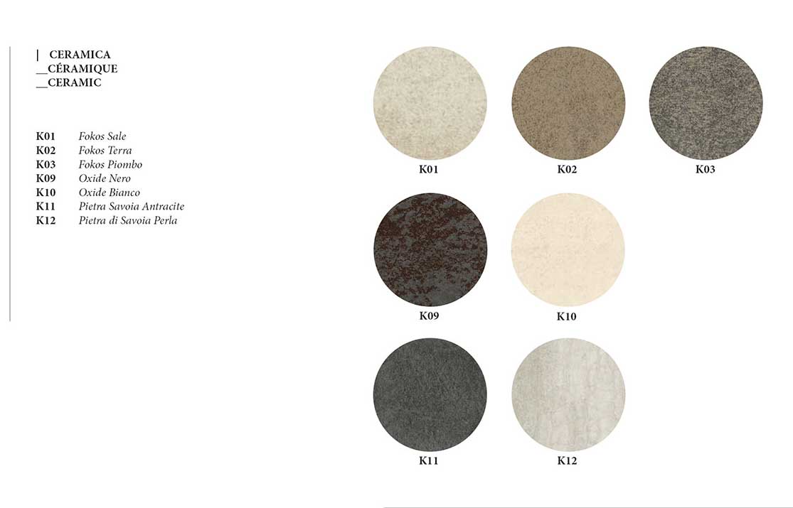 The model proposed here has inlays in ceramic “Pietra Savoia Antracite” and “Pietra Savoia Grigio Perla”.
