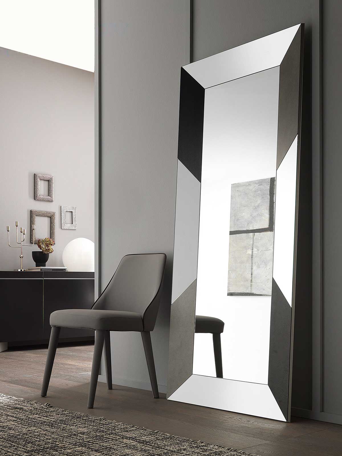 The Gloria mirror can be used both horizontally and vertically. It can be applied to a wall or laid on the floor.