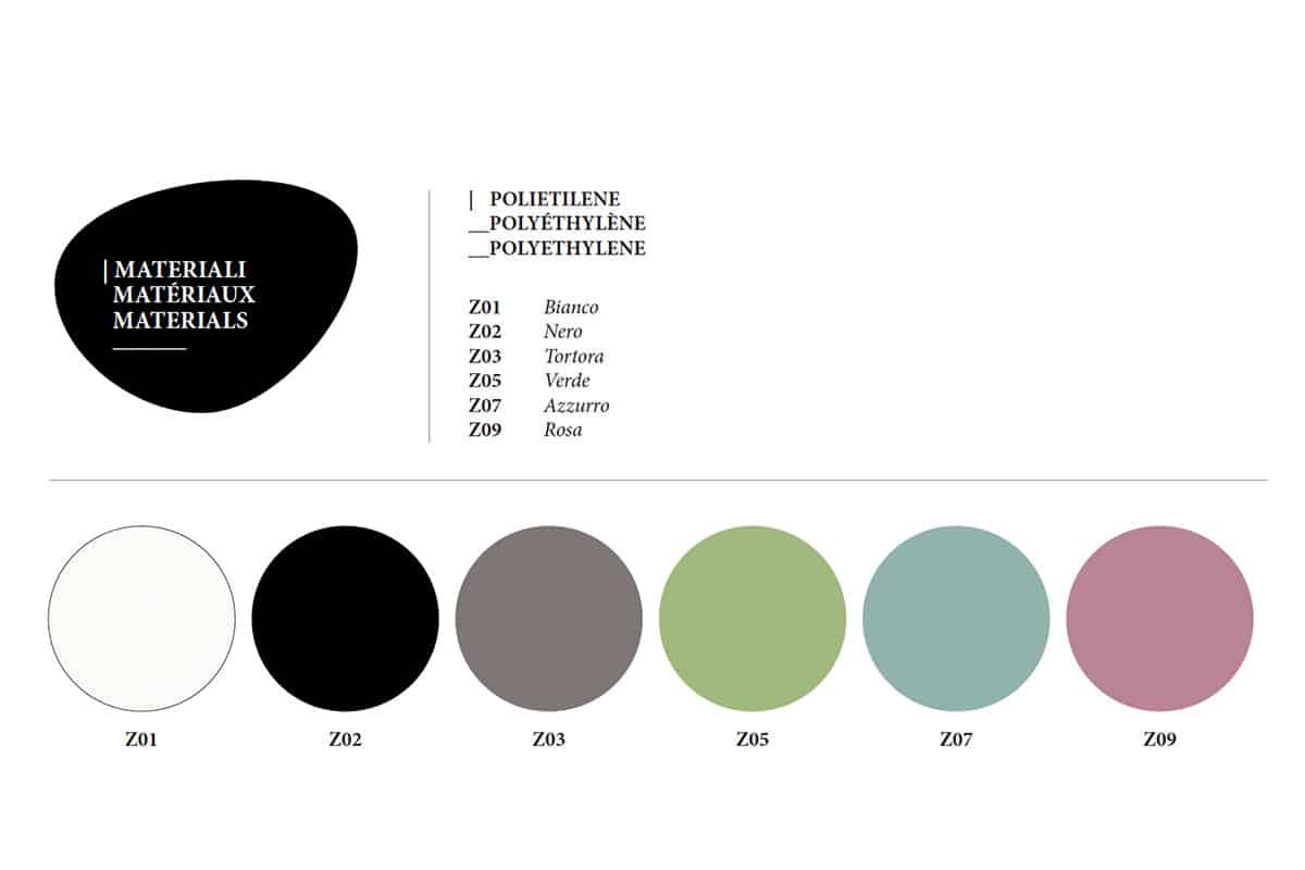 The round top shelf is made of PVC and is removable. It’s bicoloured: white on one side and walnut on the other one.
