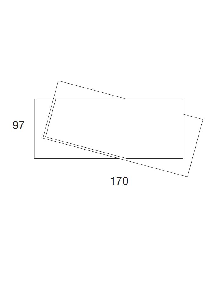 In this mirror, the lines of two overlapping rectangles intertwine and in the play of full and empty spaces a rectangular mirror and a sand-coloured decoration are outlined (alternatively the decoration is also available in ash grey).