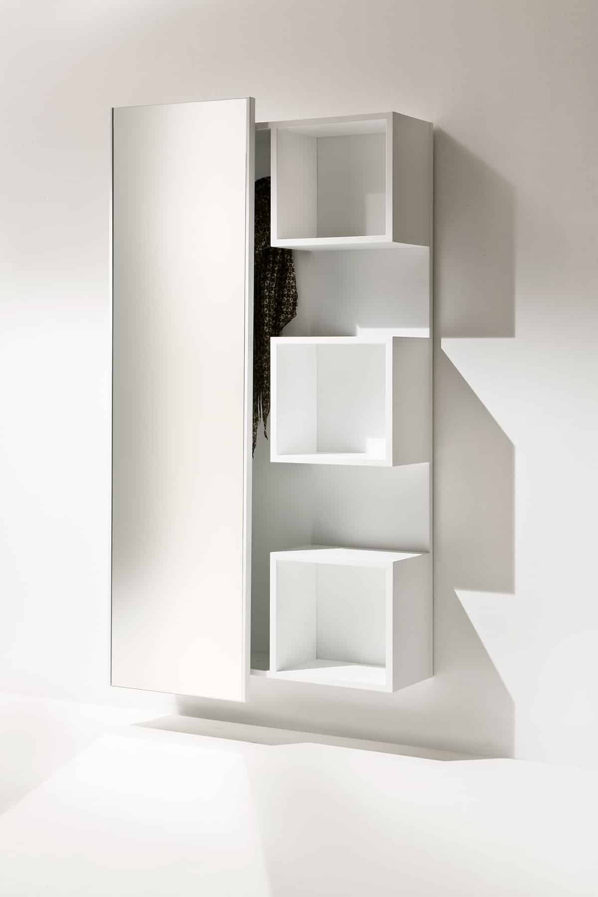 WELL is an elegant ‘Made in Italy’ piece which gives style and practicality to every environment. The whole furniture is able to change its look by simply sliding the mirror from one side to the other, thus leaving the compartments and containers visible.