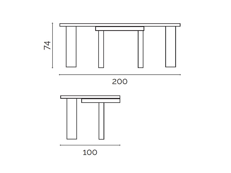 200 x 100 x h.74 cm. Poids 114 kg.