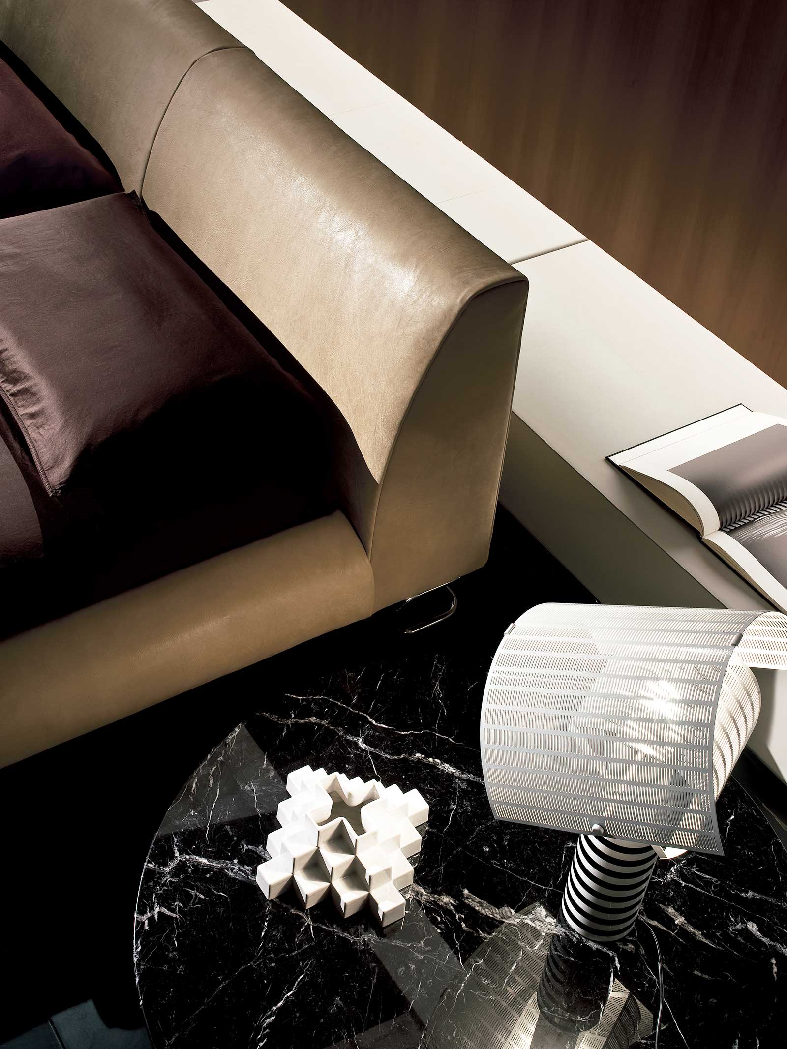 Le lit en cuir Add-Look fait partie d’une élégante collection d’articles d’ameublement signés Mauro Lipparini.