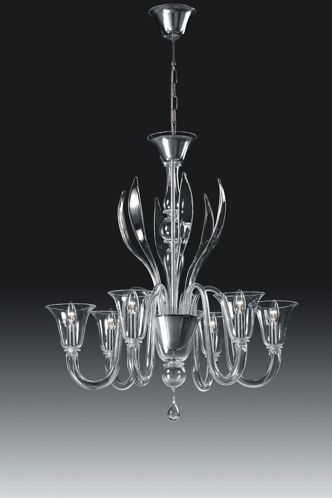 La magnifique suspension Doge-6 L est entièrement réalisée artisanalement en Italie a Murano selon l’antique tradition du verre de Murano connue dans le monde entier comme symbole de l’excellence made in Italy.