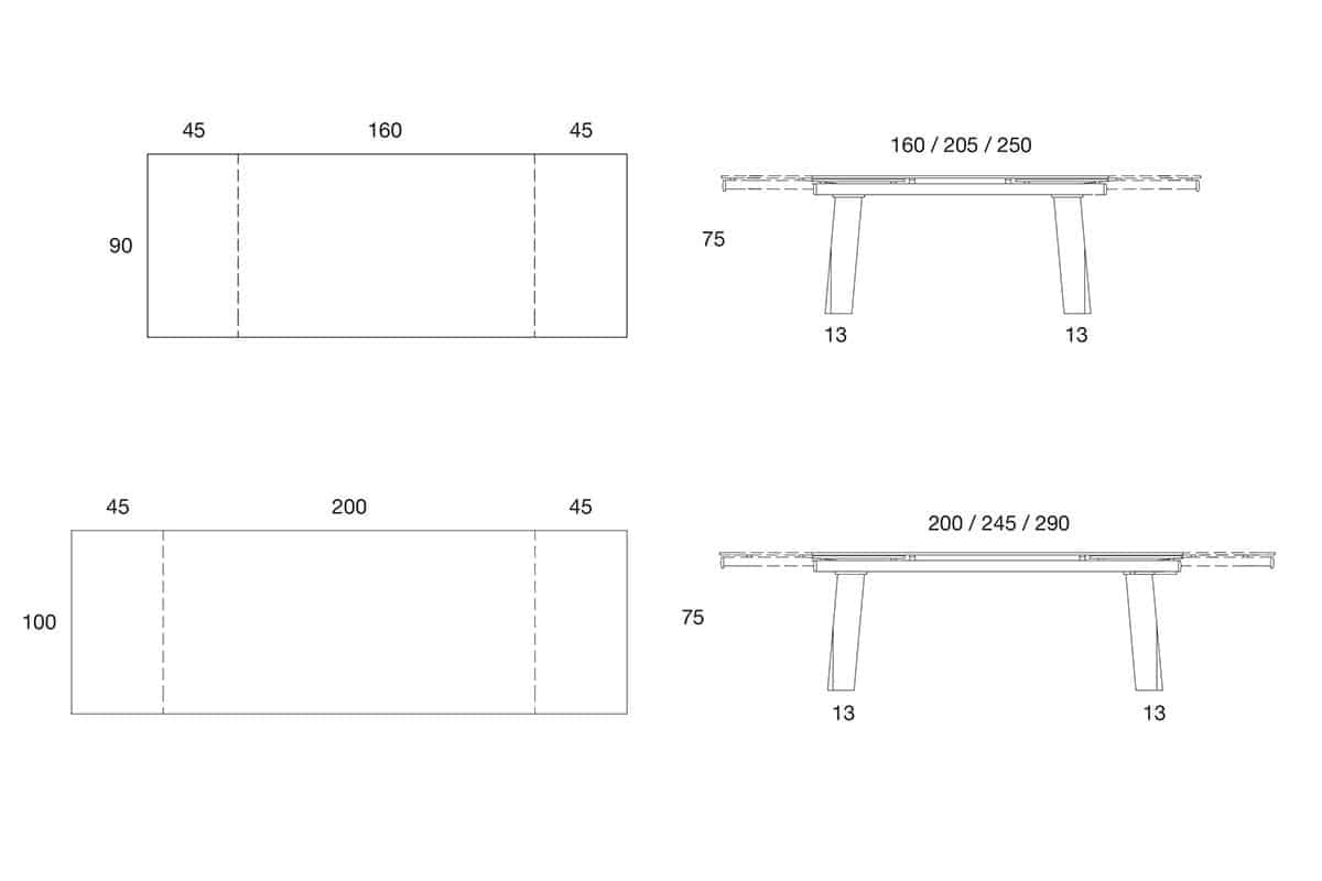 cm. 160/205/250 x 90 x h. 75