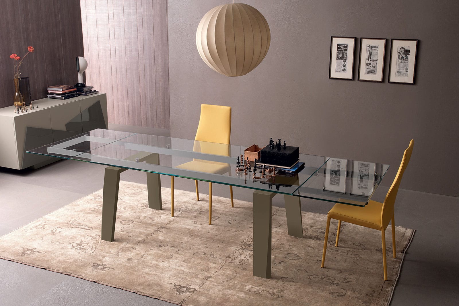 Le plateau et les rallonges sont en verre trempé transparent extra clair.