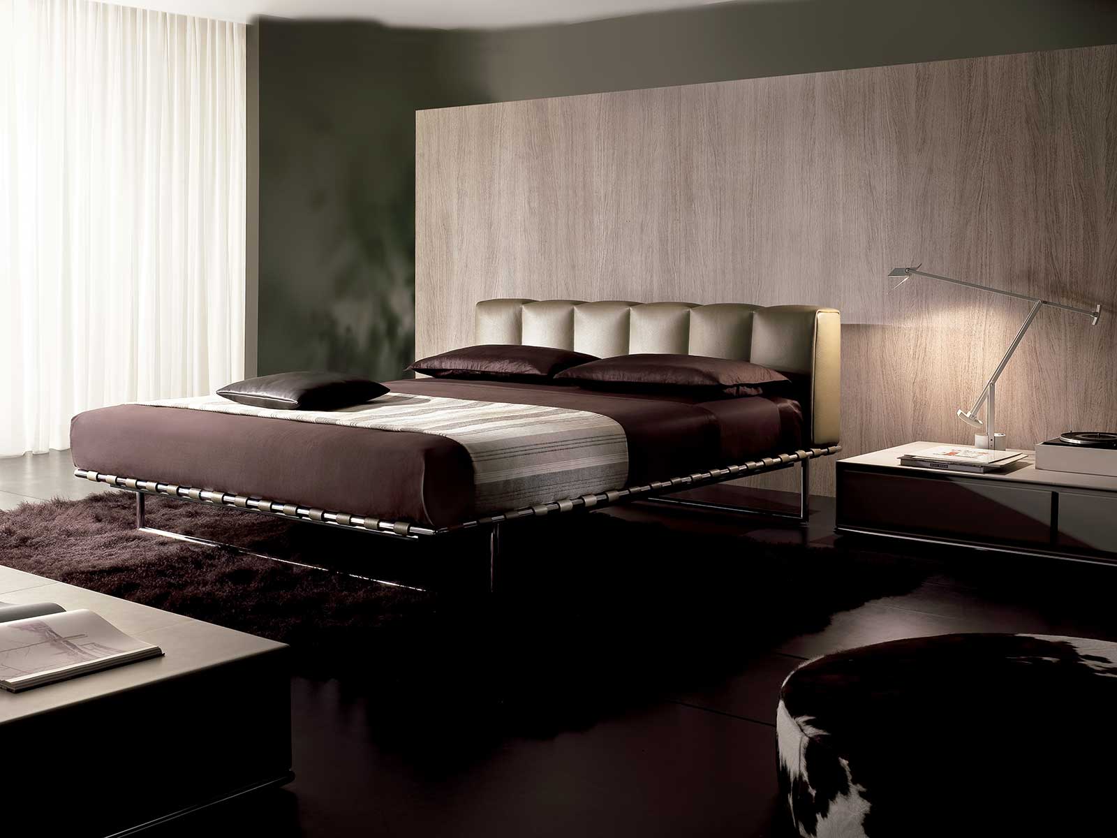 Le lit en cuir Kristall a été dessiné par Mauro Lipparini et est entièrement réalisé artisanalement en Italie.