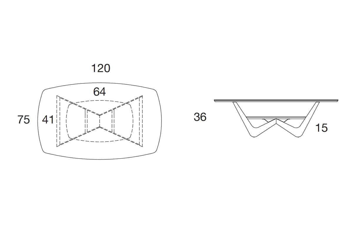 Le plateau principal est en céramique de 6 mm d’épaisseur, et mesure cm. 75 x 120.