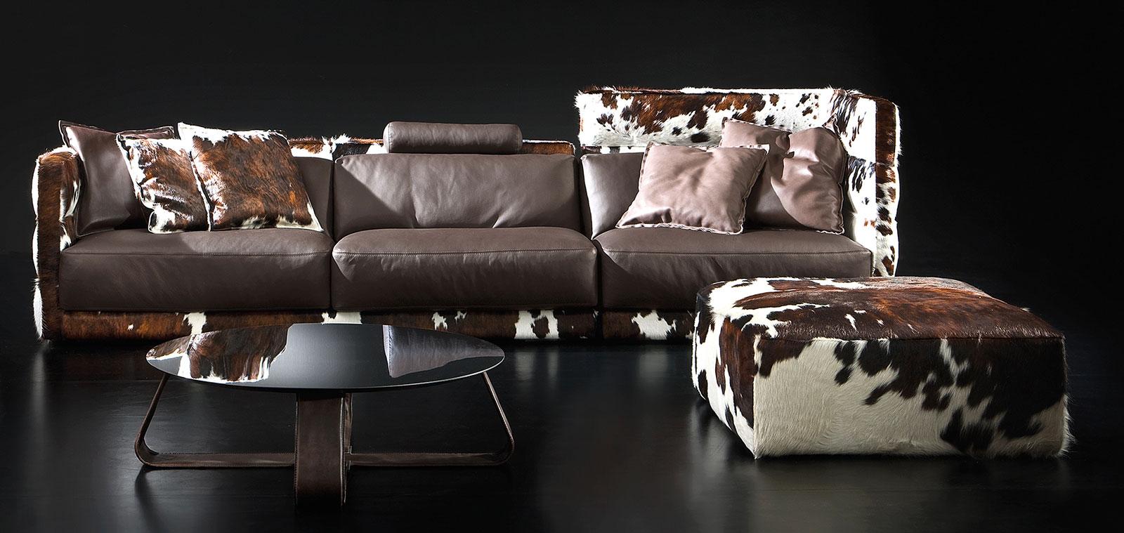 Il est entièrement revêtu d’une magnifique peau de vachette proposée dans les tonalités de noir, blanc et marron.