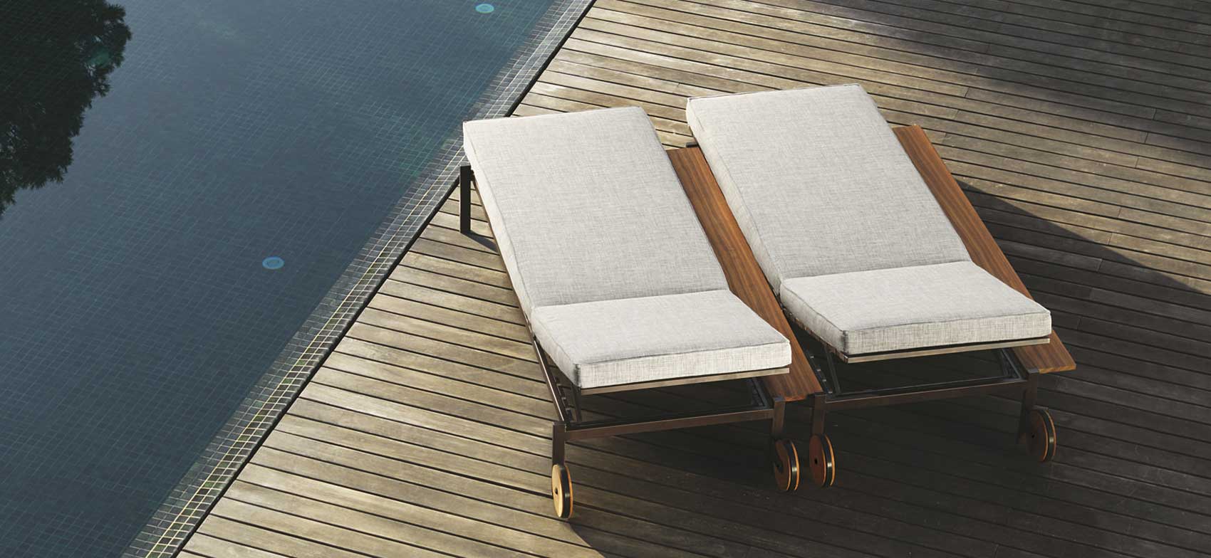 Ces articles d’ameublement d’extérieur à la ligne essentielle sont réalisés avec des matériaux d’exception.
