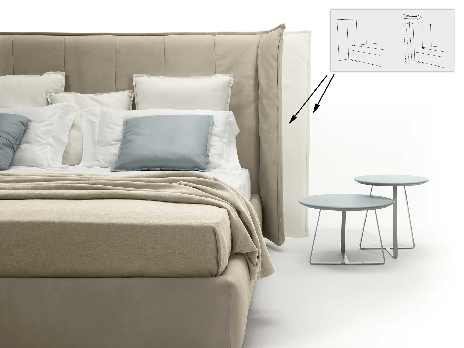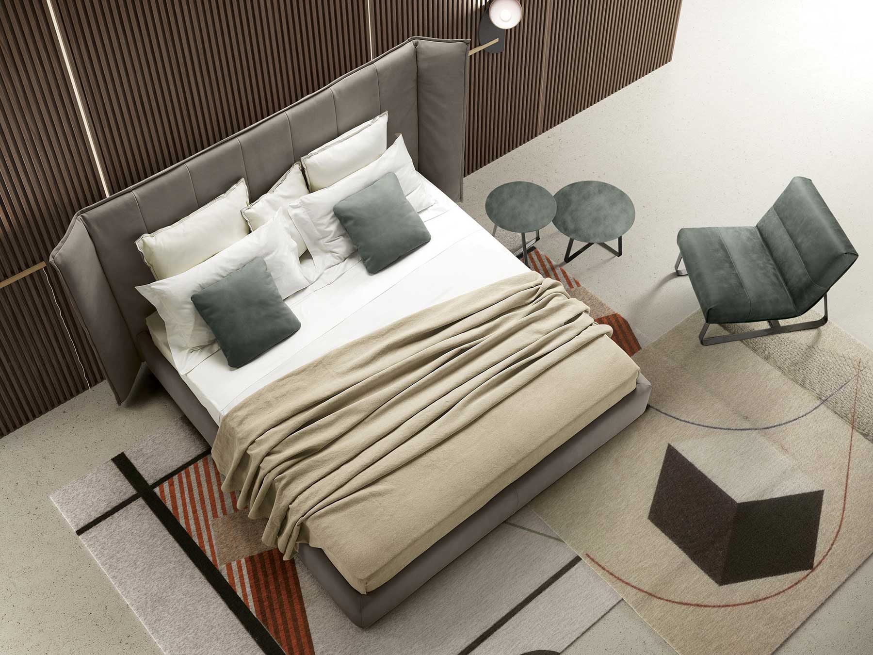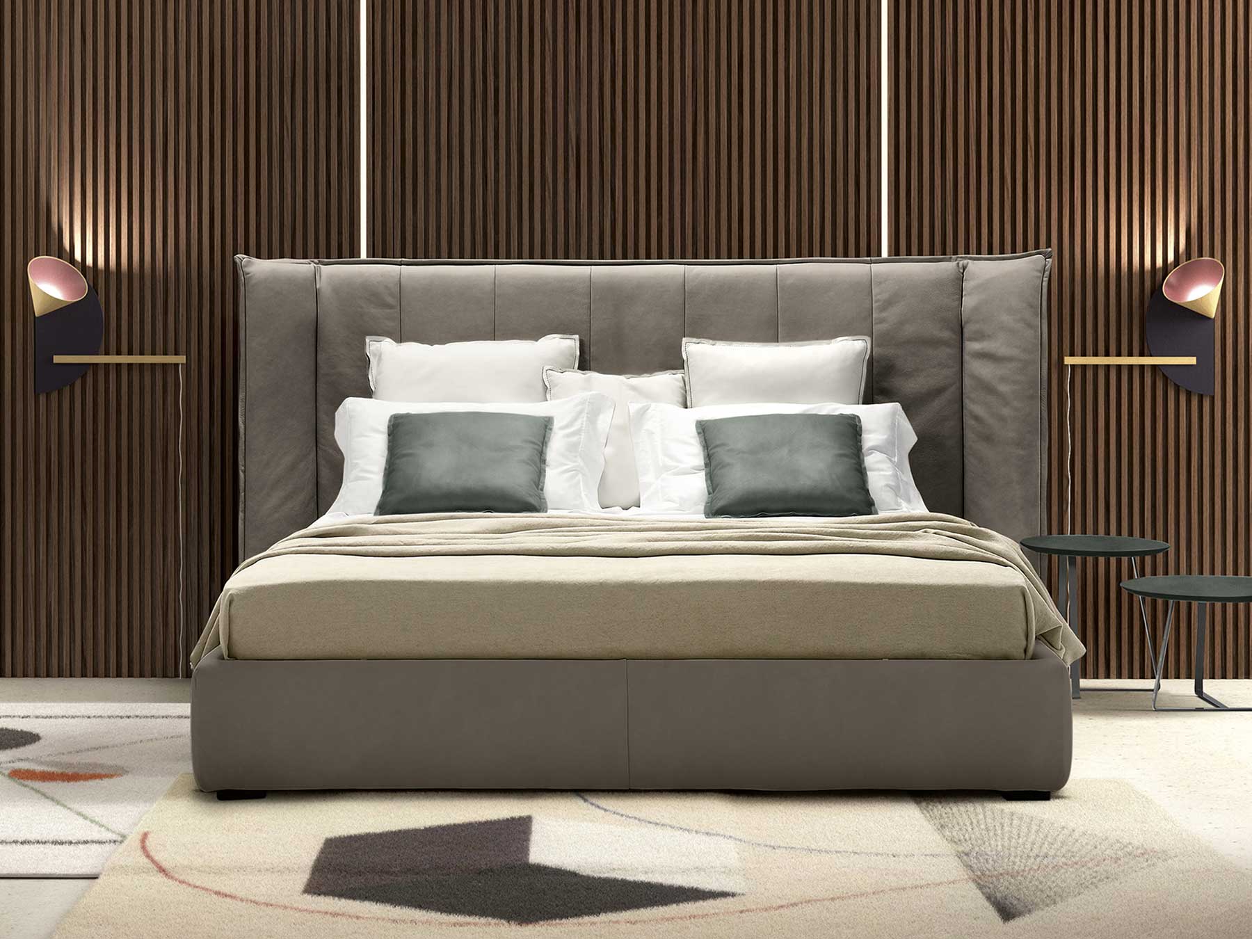 Wind est un lit en cuir réalisé artigisanalement en Italie avec les meilleurs matériaux par des artisans experts.