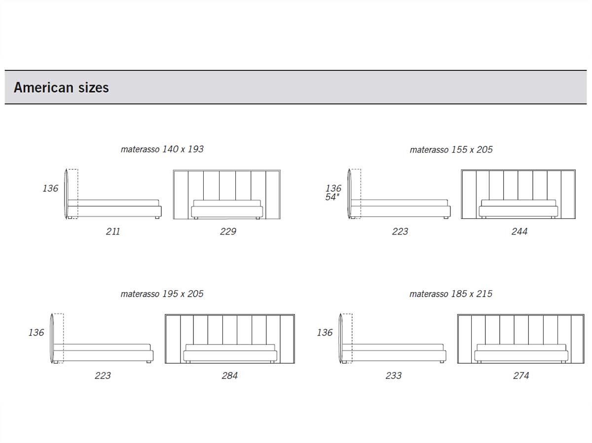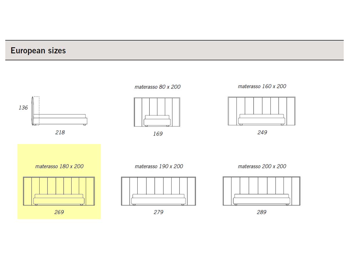 Sur demande le lit peut être réalisé dans pratiquement toutes les mesures standards de matelas Européen et Américain: