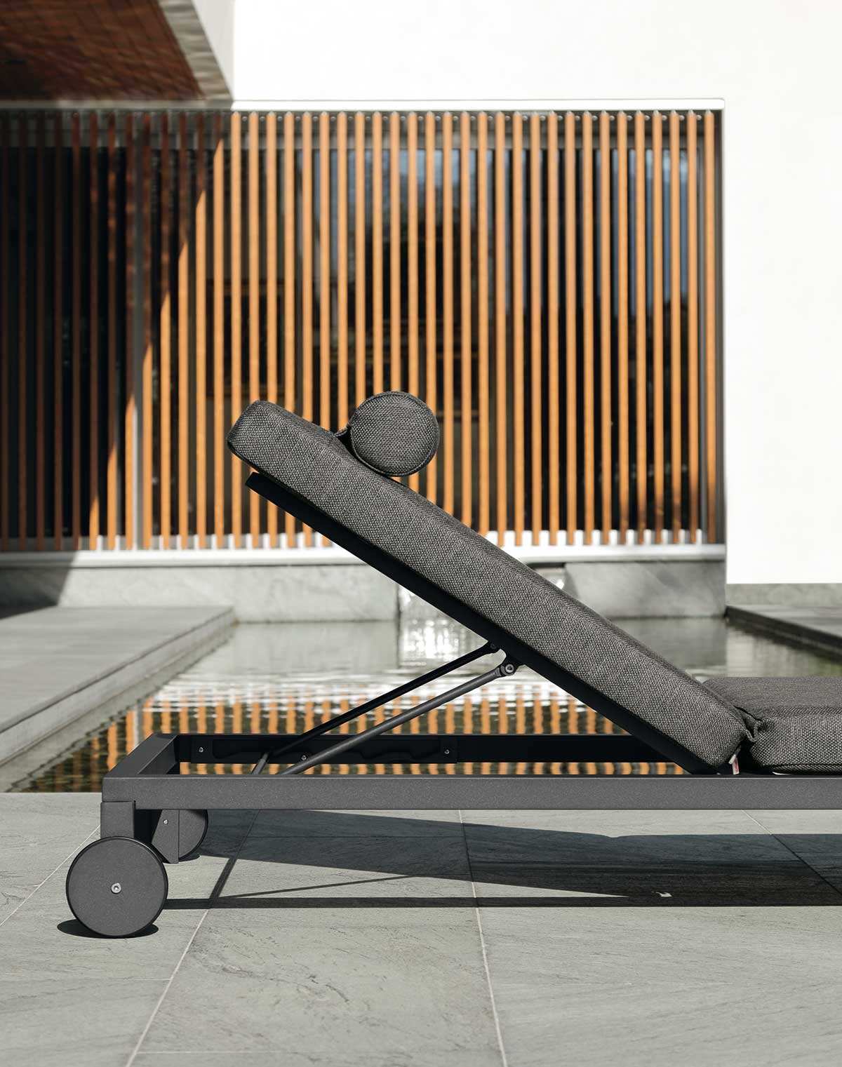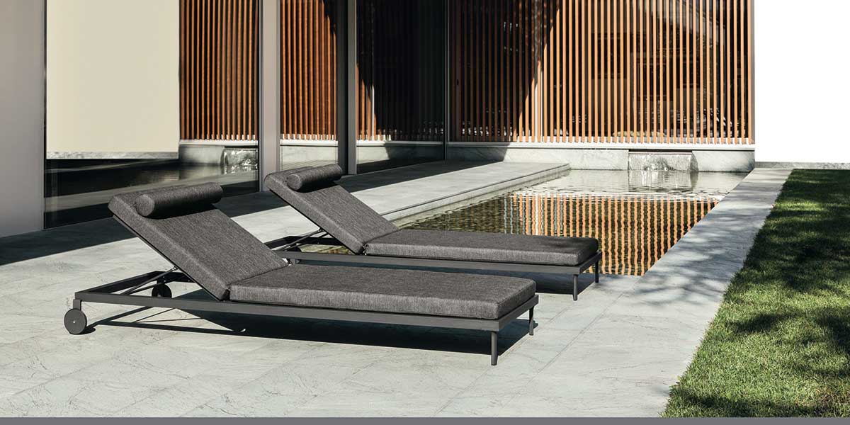 Il lettino prendisole Clariss è disegnato da Marco Acerbis con delle linee pure e moderne.