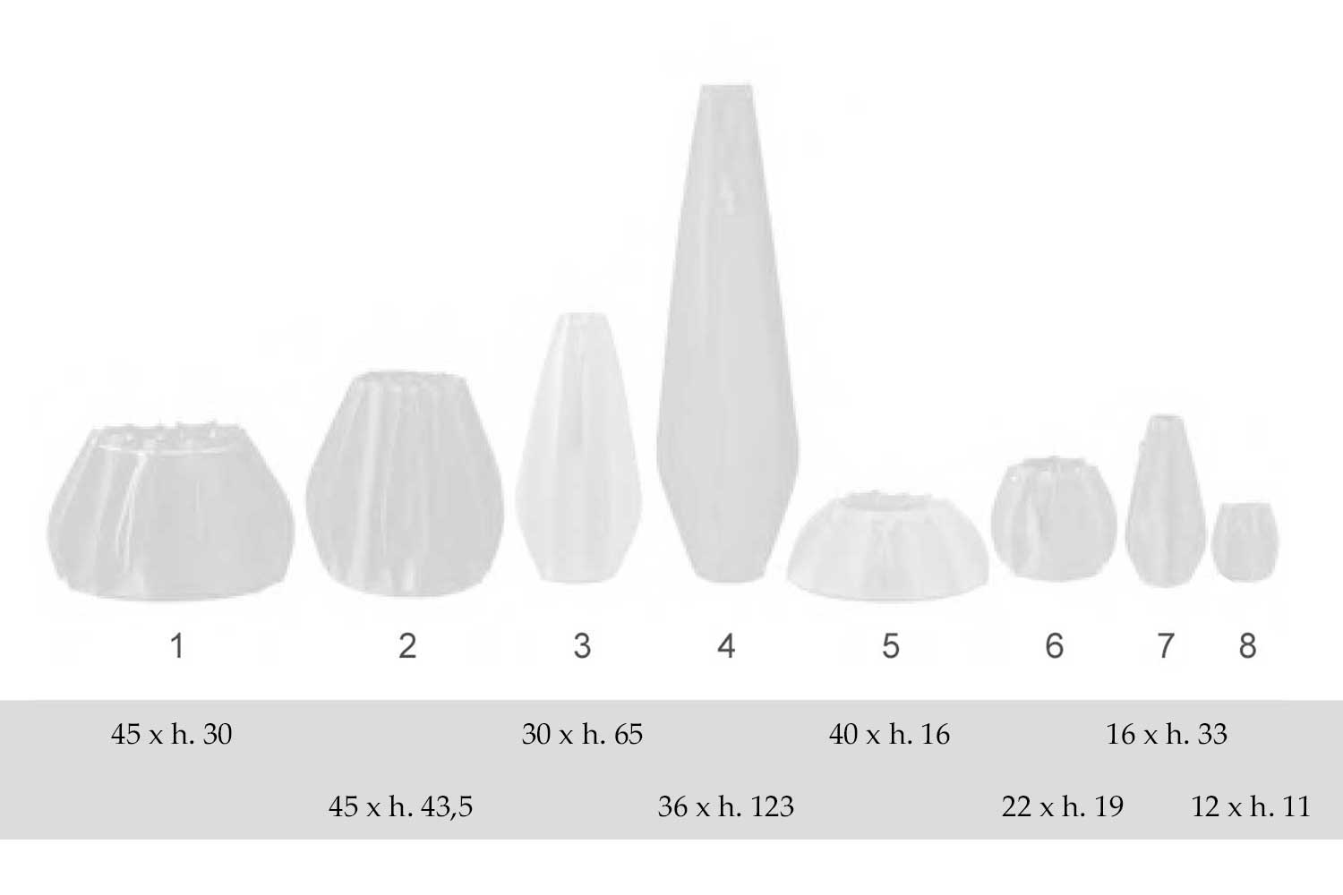 I vasi sono disponibili in 8 dimensioni: