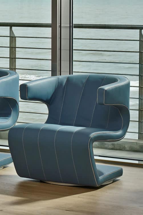 La poltrona girevole in pelle Dean è il risultato della alta sartorialità italiana unito a una approfondita ricerca di design, forme e materiali.