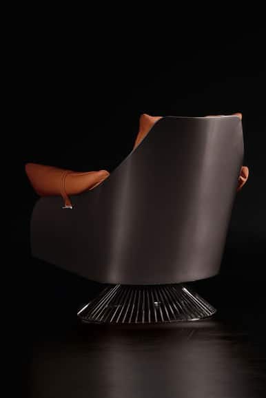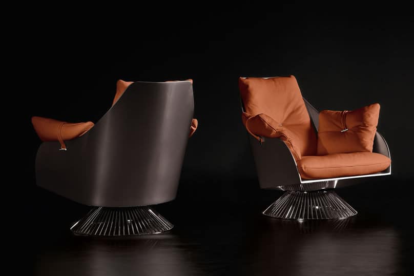 Anche le cuciture dei cuscini, che sono a vista, sono curatissime nei minimi dettagli: l’accurata selezione di qualità e colore del filo delle cuciture a contrasto sulla pelle sono l’ennesimo dettaglio che fa della poltrona girevole Gloss un prodotto di vera e propria sartoria nel mondo dell’arredamento.