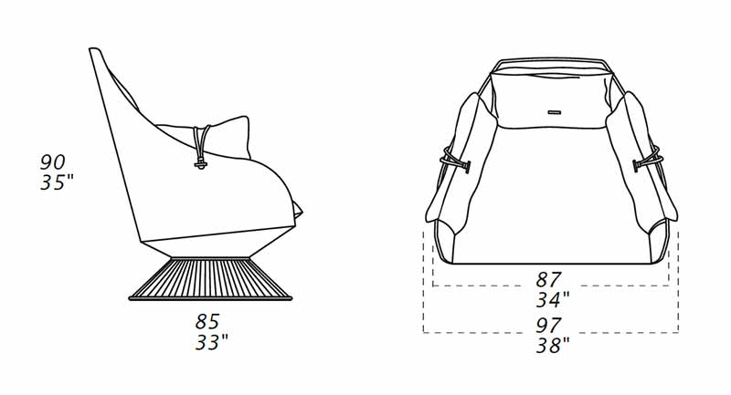 Le dimensioni esterne di Gloss sono: larghezza massima 97 cm., profondità 85 cm., altezza 90 cm.