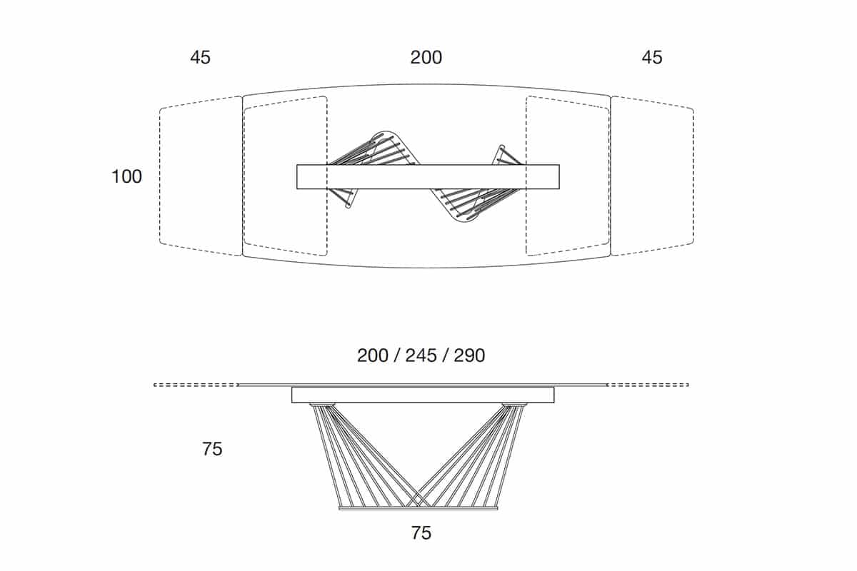 Grazie a due allunghi indipendenti, il piano può misurare 200, 245 o 290 cm.