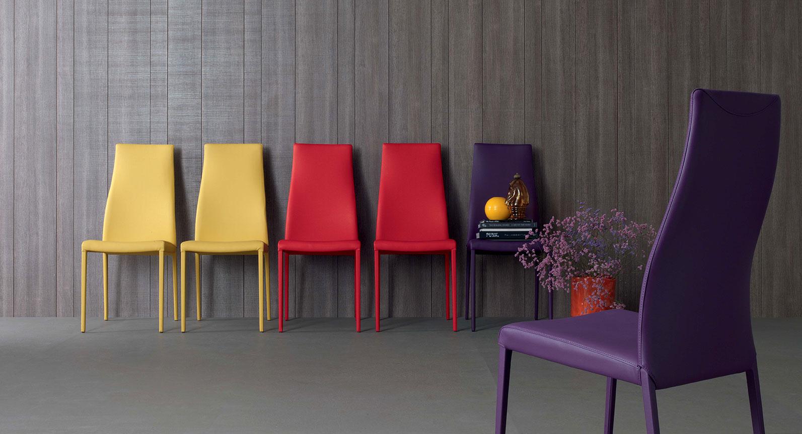 Tratti lineari, schienale alto, seduta confortevole, Hayworth è composta da una struttura in metallo ed è interamente rivestita in diversi materiali e numerosissimi colori.