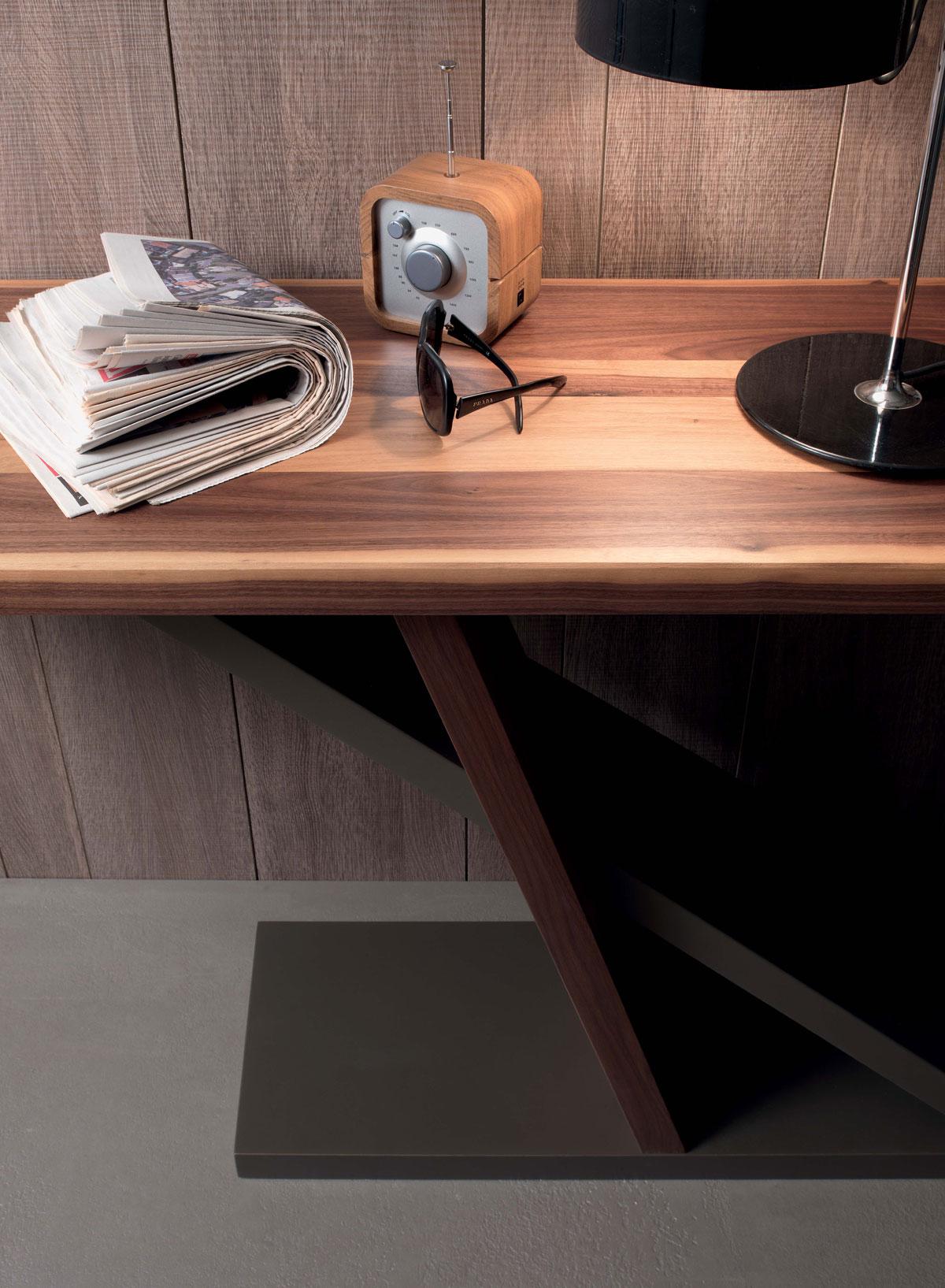 Il ripiano è in legno impiallacciato con finitura noce canaletto, spessore cm 2.5.