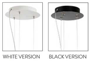 Il rosone al soffitto può essere nero o bianco, secondo la finitura scelta per il diffusore.