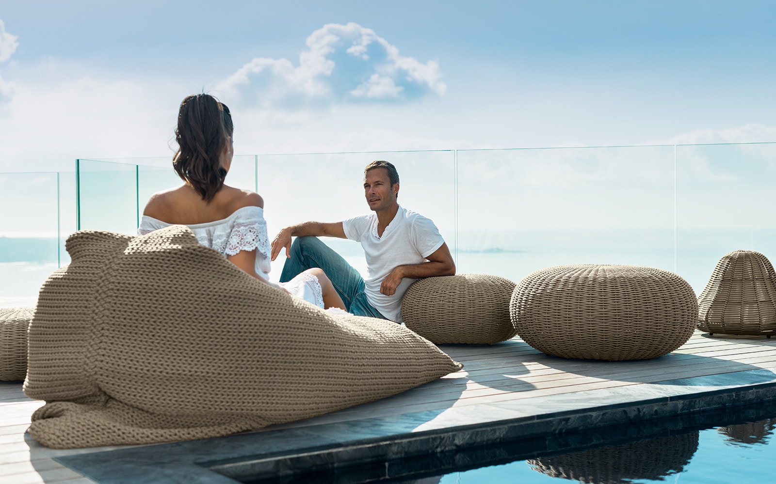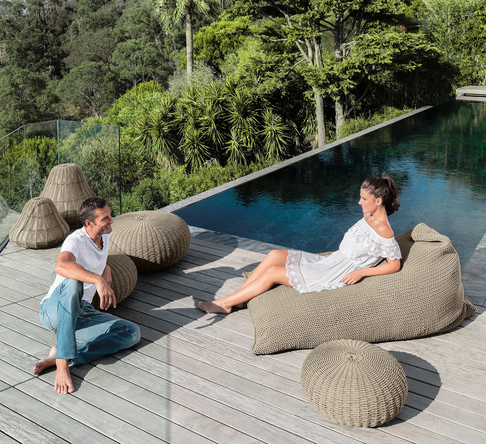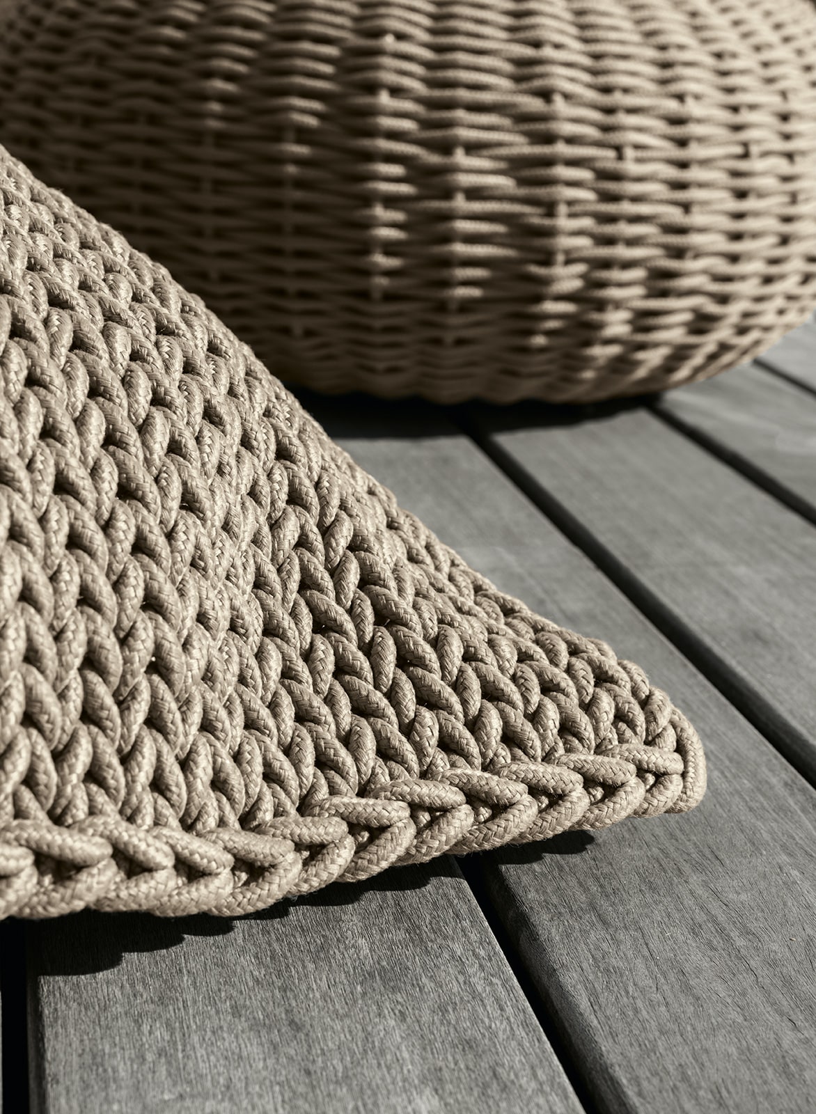 Originale con il suo intreccio in corda arrederà terrazze e giardini con eleganza.