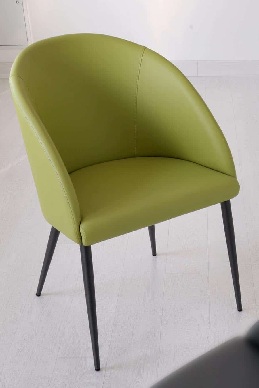 Dinamica e accogliente, la poltroncina Kid-I ha seduta e schienale imbottiti e rivestiti con i migliori materiali e piedini conici in metallo.