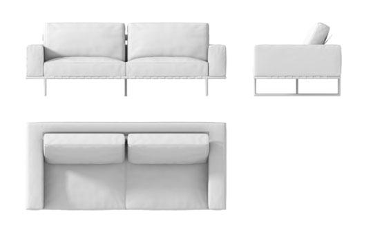 I cuscini asportabili della seduta del divano sono in piuma (nella parte superiore e frontale del cuscino) e poliuretano espanso con densità differenziate da 30 a 35 kg/m³ ed esente da CFC (nella parte inferiore del cuscino).