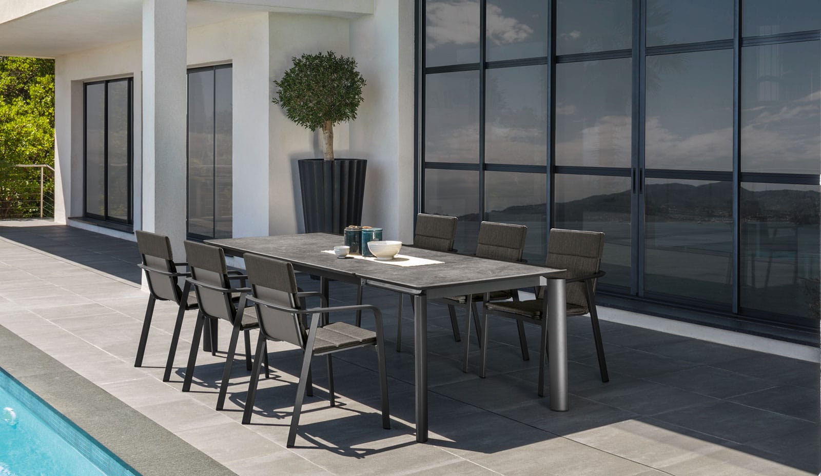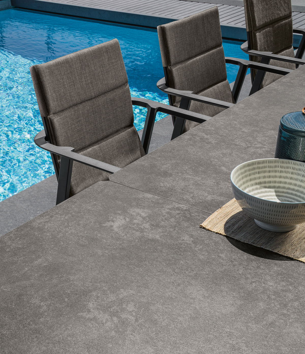 Il tavolo è perfetto per l’impiego in una moderna villa in giardino, in un patio o in una ampia terrazza, così come su uno yacht o negli spazi pubblici di hotel, bar e ristoranti.