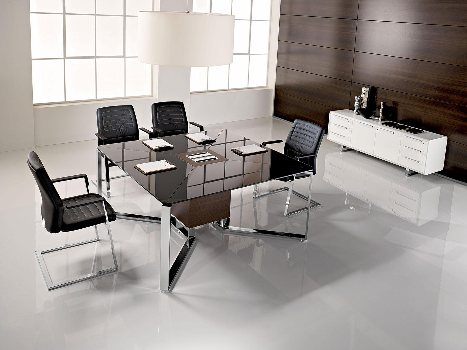 Le gambe terminali e centrali sono combinabili fra loro e consentono l’aggregazione di vari moduli idonei a configurare molteplici tipologie di tavoli di forma quadrata o rettangolare che ne consentono l’utilizzo in sale di piccola e media riunione cosi per grandi sale consigliare.