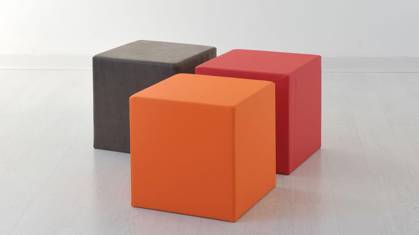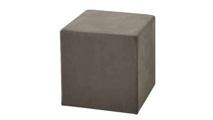 Questo pouf ha una forma di un cubo di 38 cm. di lato.