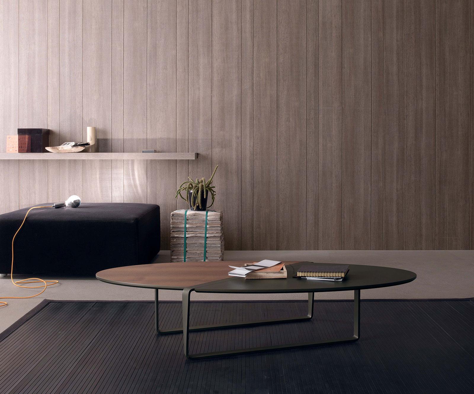 Andrea Lucatello ha disegnato un tavolino dalle forme moderne e attuali, utilizzando materiali solidi e ben sperimentati.