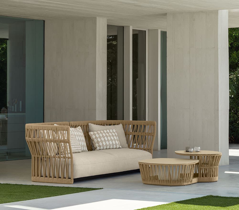 Fate dei vostri spazi esterni un luogo chic e di tendenza scegliendo il magnifico divano Reef firmato Ludovica e Roberto Palomba.