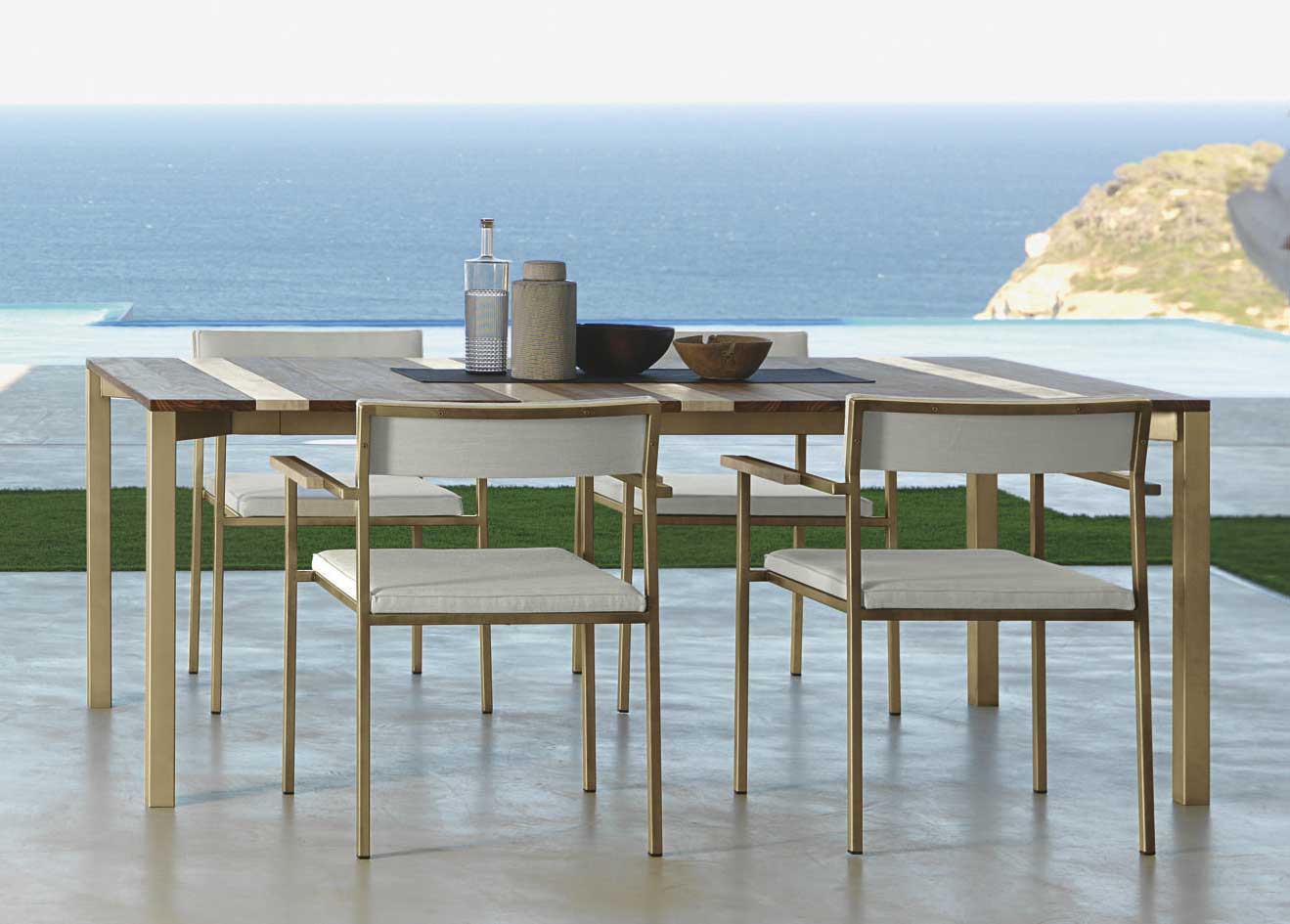 Questi articoli di arredo da giardino dalla linea originale ed essenziale sono realizzati con materiali d’eccezione e sono perfetti per completare con gusto esclusivo i migliori spazi all’aperto: piscina, giardino, una grande terrazza, le aree esterne di uno yacht.