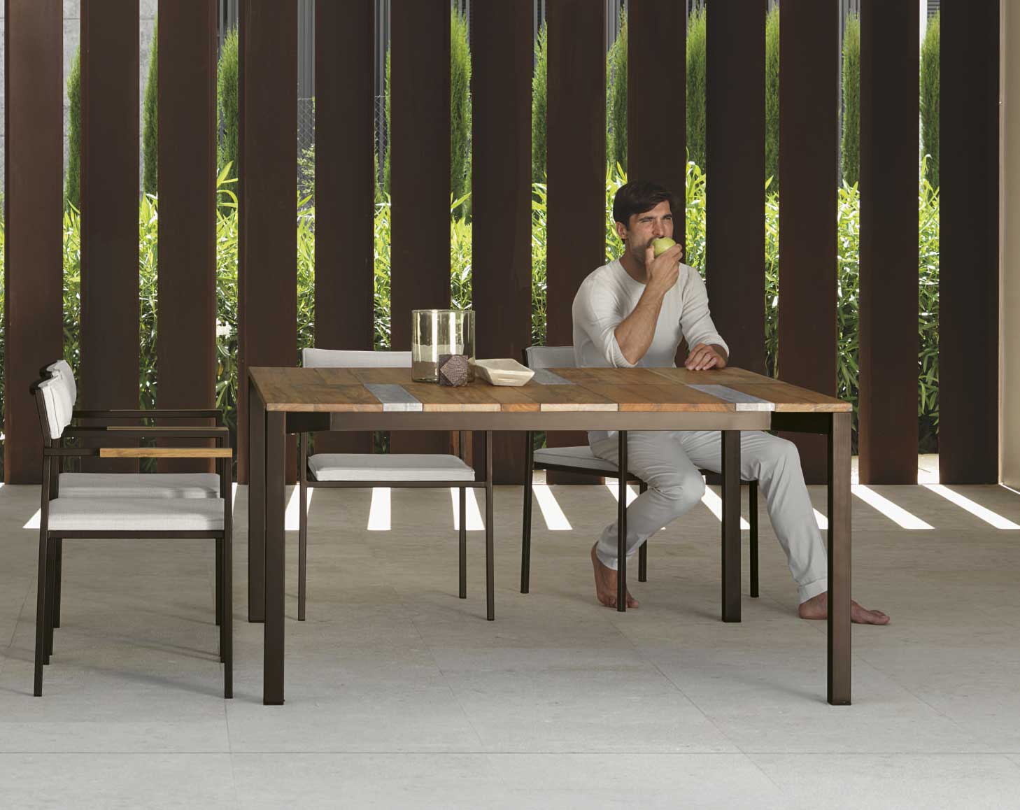 SantaFe tavolo da giardino in iroko e travertino