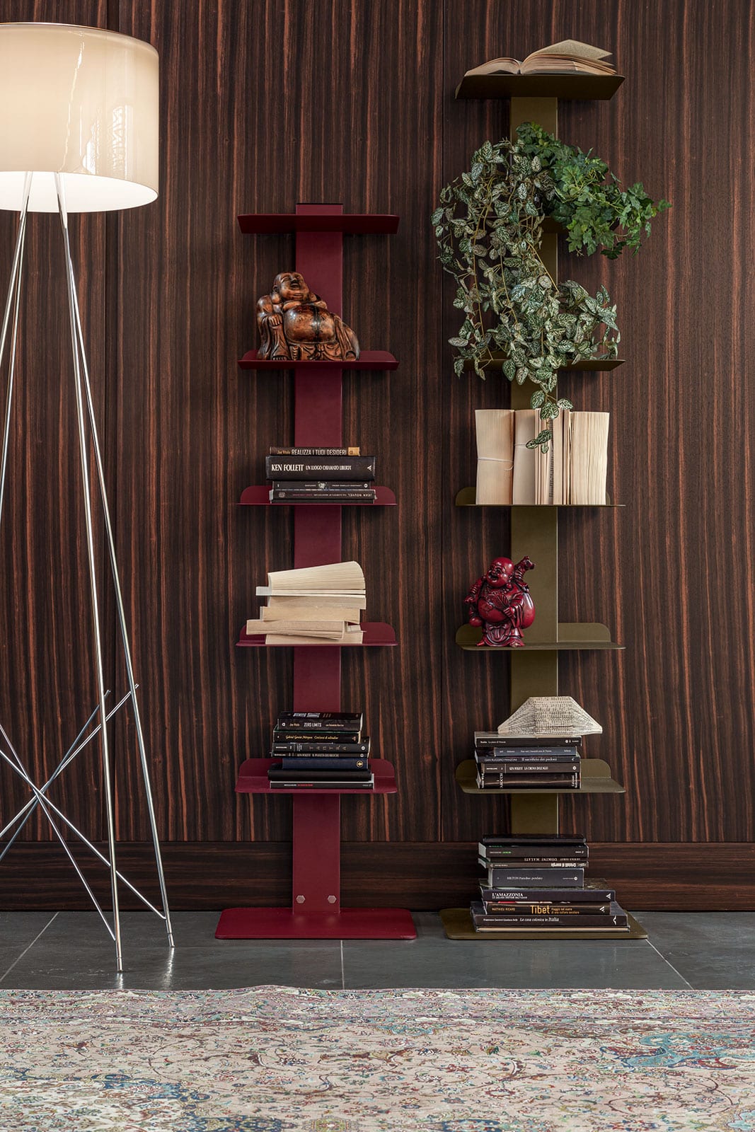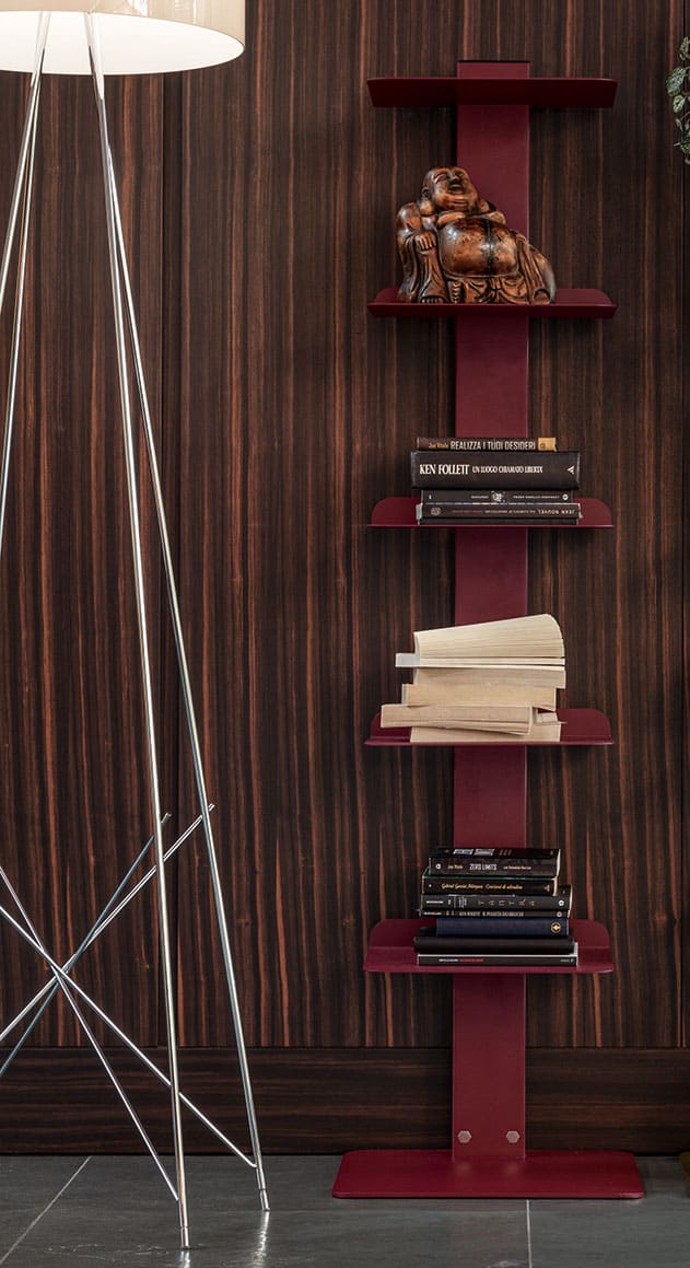 Step è una libreria a parete a colonna dal minimo ingombro e dalla grande capacità.