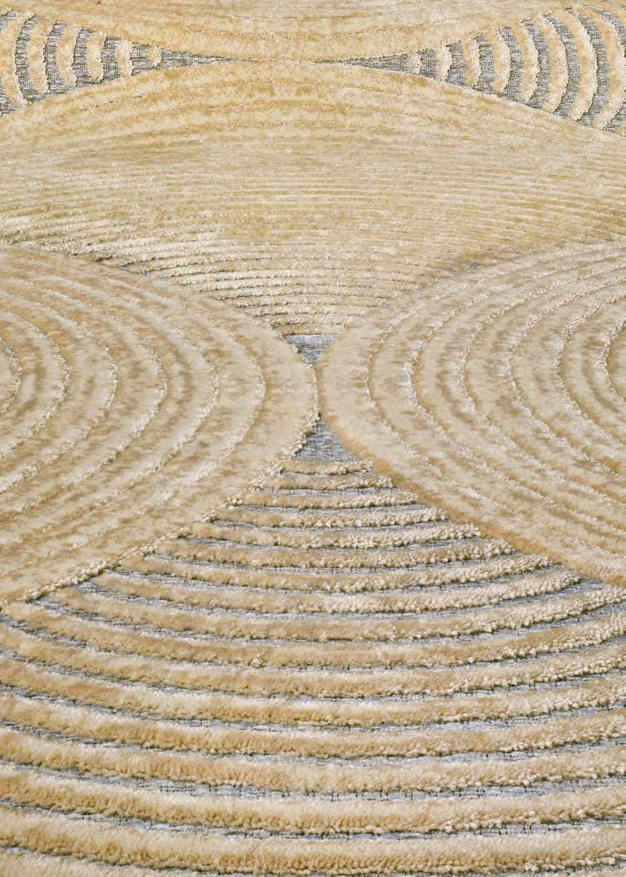 Il Tappeto rettangolare Gabrielle 794J/Q41 Oro antico – cerchi concentrici sovrapposti unisce design e matericità: cerchi concentrici sovrapposti in sfumature di giallo oro antico, per un risultato scenografico ma equilibrato, ideale per living contemporanei e sale da pranzo di carattere.