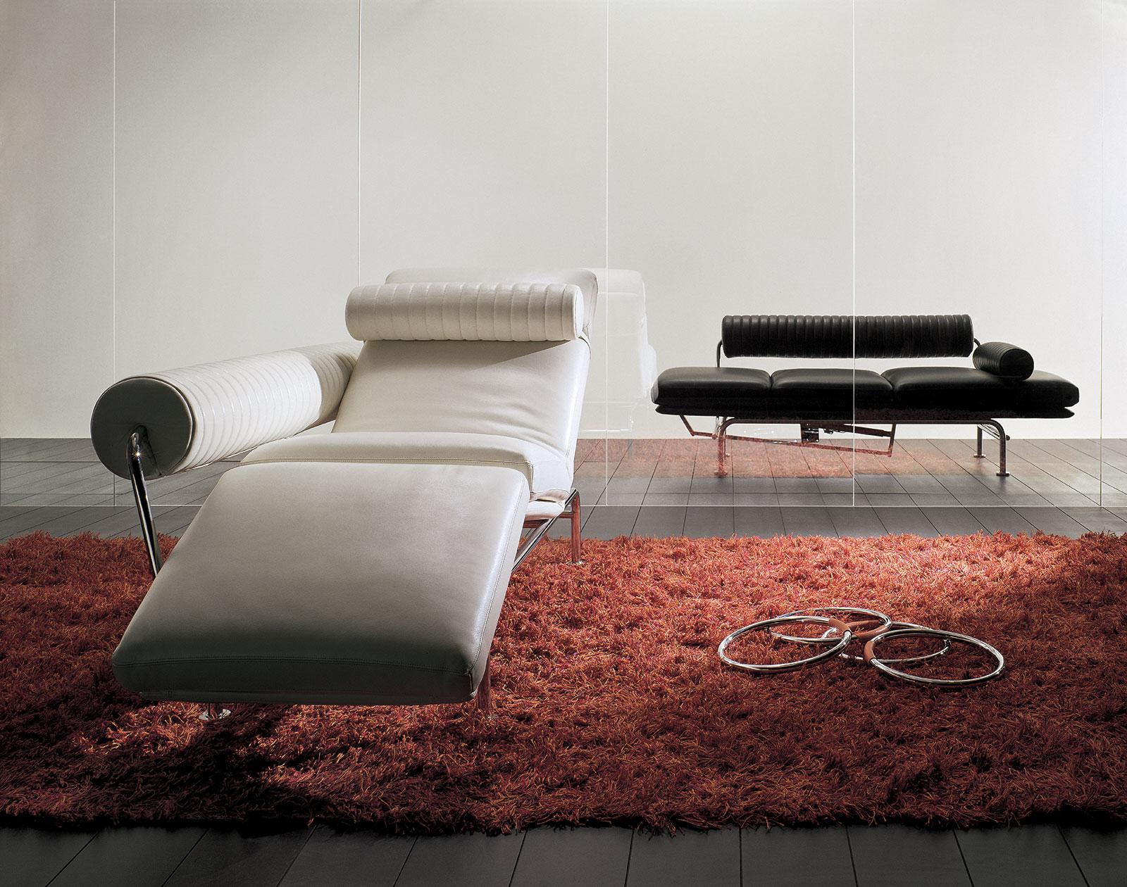 Frutto del genio e dell’artigianalità italiana, è firmato Ammannati & Vitelli e realizzato con i migliori materiali disponibili. La struttura è in acciaio tubolare cromato. L’imbottitura in poliuretano espanso indeformabile assicura la sua resistenza nel tempo, mentre la differenza di densità nei diversi strati di poliuretano utilizzati e lo strato di ovatta che ricopre il tutto rendono il divano estremamente confortevole.